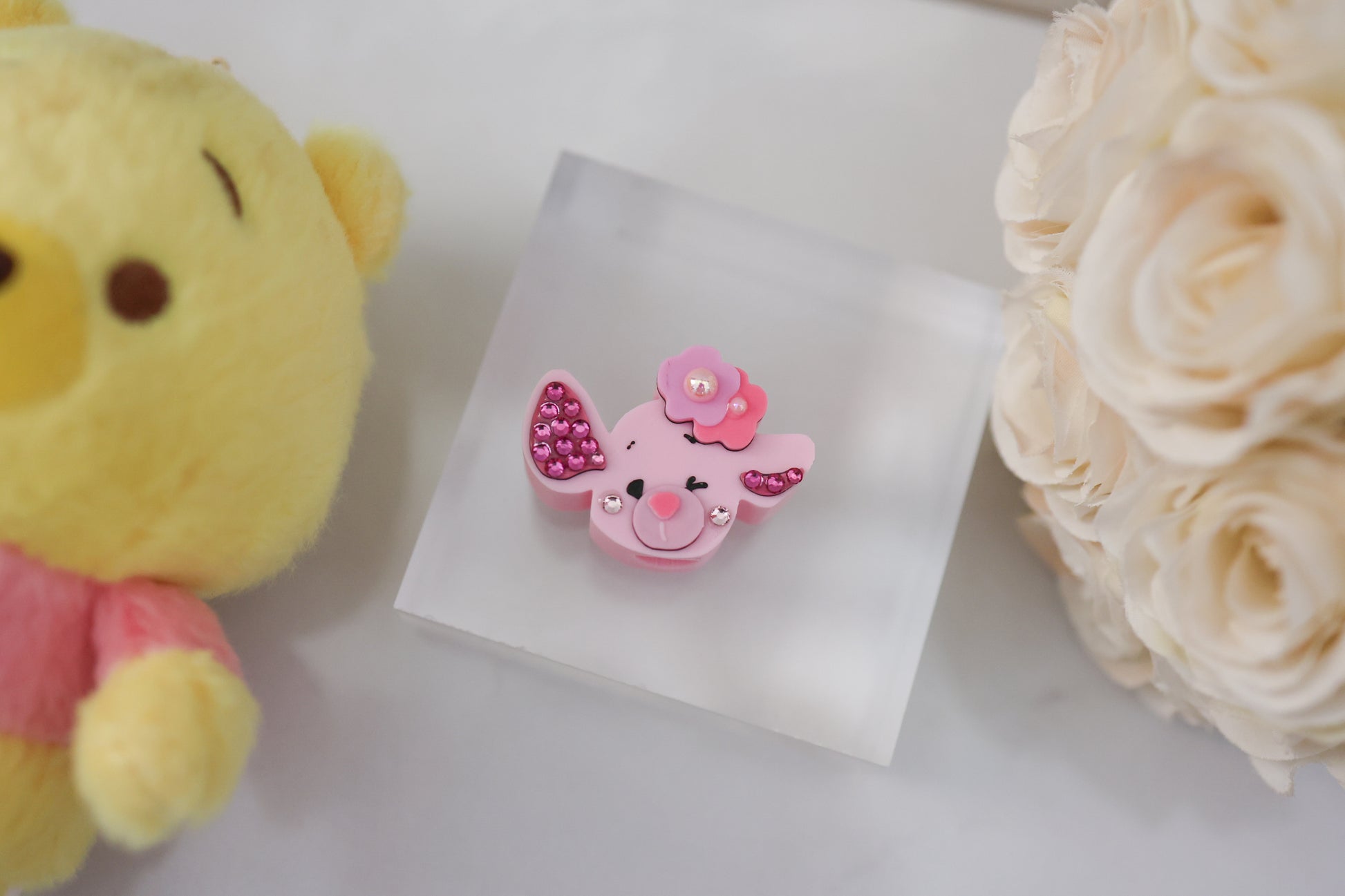 accented with glass rhinestones and faux pearls